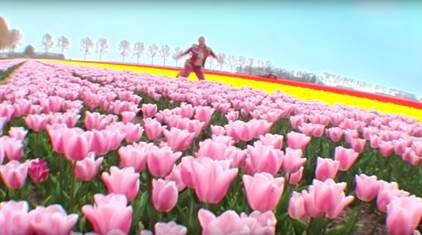 In《pepperminta》, I think she summed up all her personal styles. Image, music and behavior art are integrated together. Although it was filmed in 2009, I still think I saw more fresh elements in Pipilotti rist's films than in today's popular films. I am fascinated by the control of the color of the lens under the lens of Pipilotti rist. It was once said that men were very good at grasping lines, and women were very good at grasping colors, which is no longer an exaggeration in Pipilotti's works. The use of color without scruples, colorful characteristics give people the absolute visual impact. Flowers are often used in her works, and the use of flowers is highly symbolic of women. (Fig. 1)